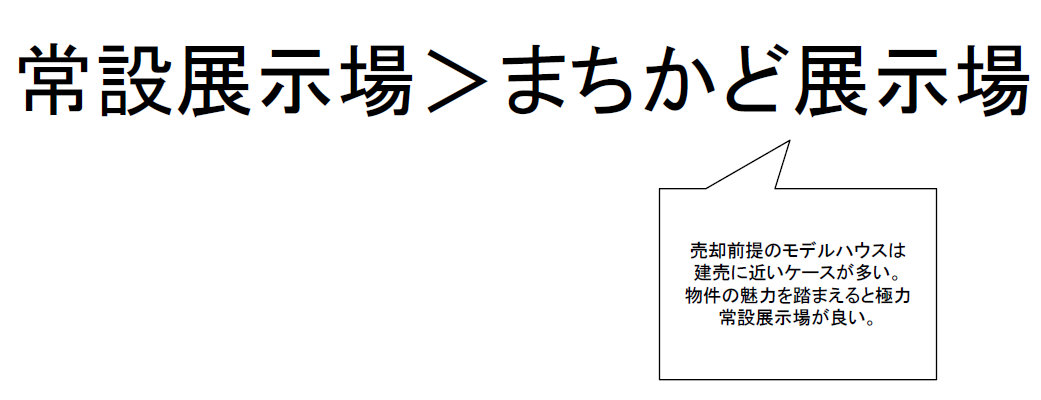また、他の販路を見ると、常設展示場とまちかど展示場を展開しているケースがあるが、まちかど展示場は、会社によっては建売に近いケースが多く、集客力が低い。すなわち、常設展示場の方が集客力が高いといった考え方になる。