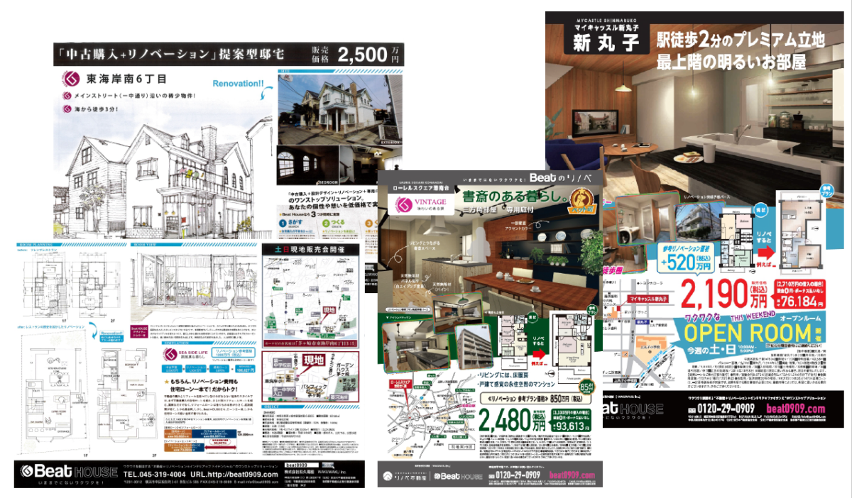 全てのツールやステップの標準化を行い、下の図のようにチラシなどを作成し、営業ツールも全て準備することで、1年目の若手でも簡単に受注できる体制を構築した。