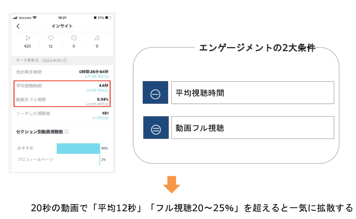 TikTokでバズるには、平均視聴時間とフル視聴率を意識した運用が重要である。