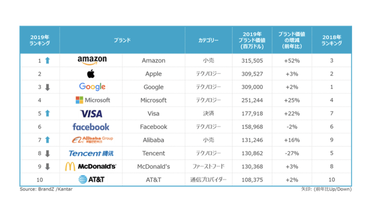 下の図は、世界のブランドランキングを 示したものであるが、このようにブランドを構築すると、それが資産となり、企業価値が高まるのである。