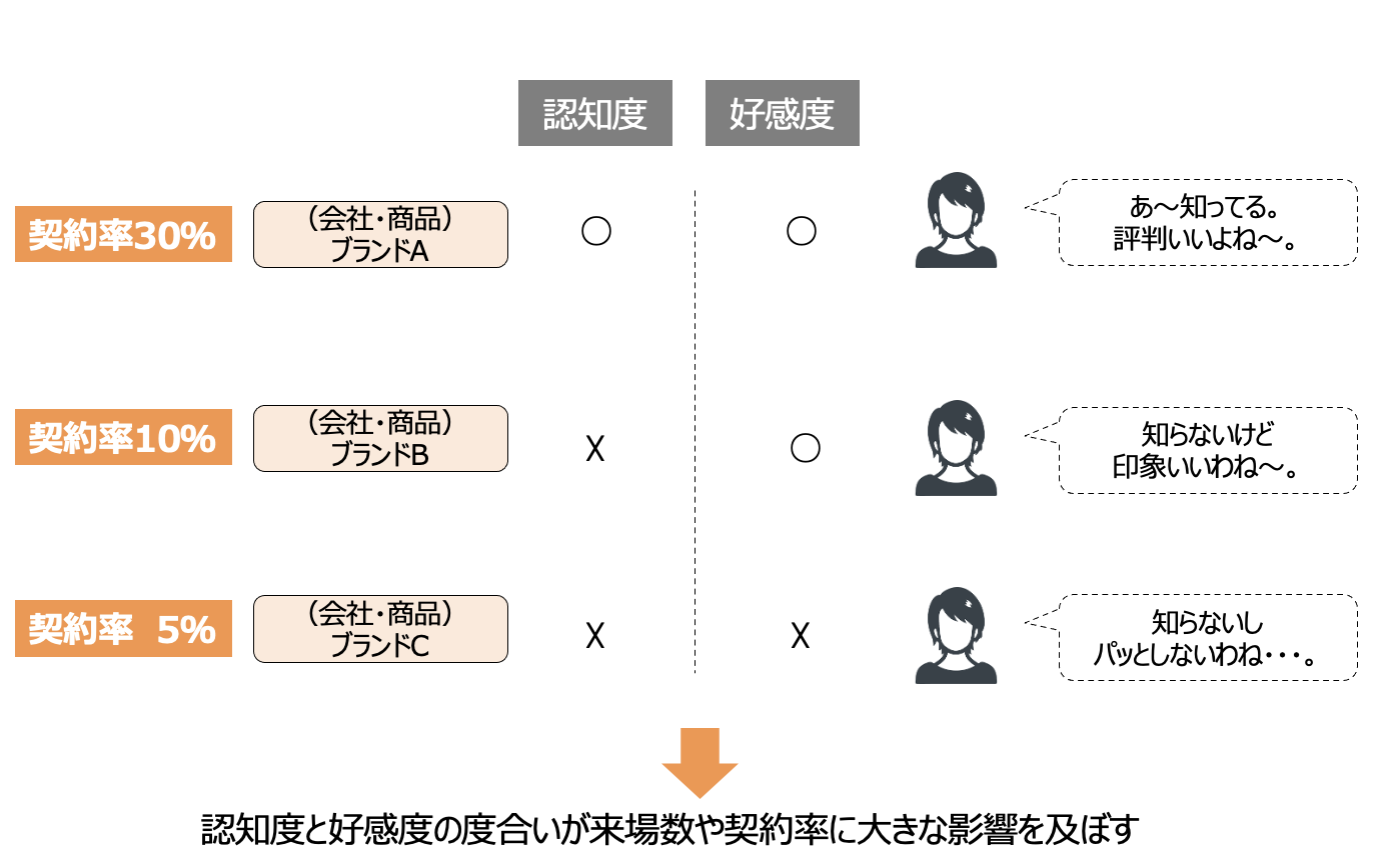 現時点で自社の契約率が低いとお悩みの方は、営業力を上げるのではなく、認知度と好感度を上げることでも解決ができるということをぜひ押さえておいていただきたい。